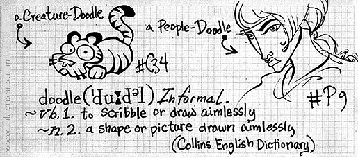 Thank you!!! I'm noticing it doing me a lot of good too - keeping up with the routine of doing one every single day. The Doodles are quick to do, so it works. The rules are: no prior planning + no preliminary sketching. I simply put the brush [pen, pencil, etc...] to paper and draw. If it's crap it gets thrown out. If I like it, it lands on the blog. Sometimes the first one works. Sometimes I have to do 3 or 4 before I get a good one. :) xx - LLV
